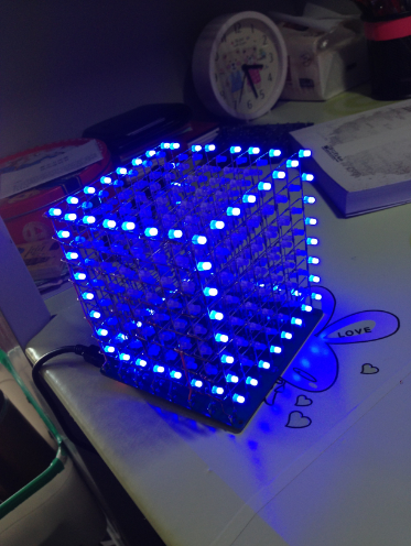 闪闪“光立方” 8乘以8乘以8是多少啊?叶俊同学告诉说那是可怕的512。一个数字何来“可怕”之有,原 来他在这次活动中制作的是一个8*8*8的光立方体,这个制作中使用了512个led发光灯,为 了把这512个焊接在一起,他熬了足足两个星期,十手指烫伤了九个。不过,这吃过苦中苦 的作品,外观及展示效果那是闪亮观众的眼睛,漂亮极了,外加单片机的控制,它可以展 示各种图形各种文字,而且是立体效果的。