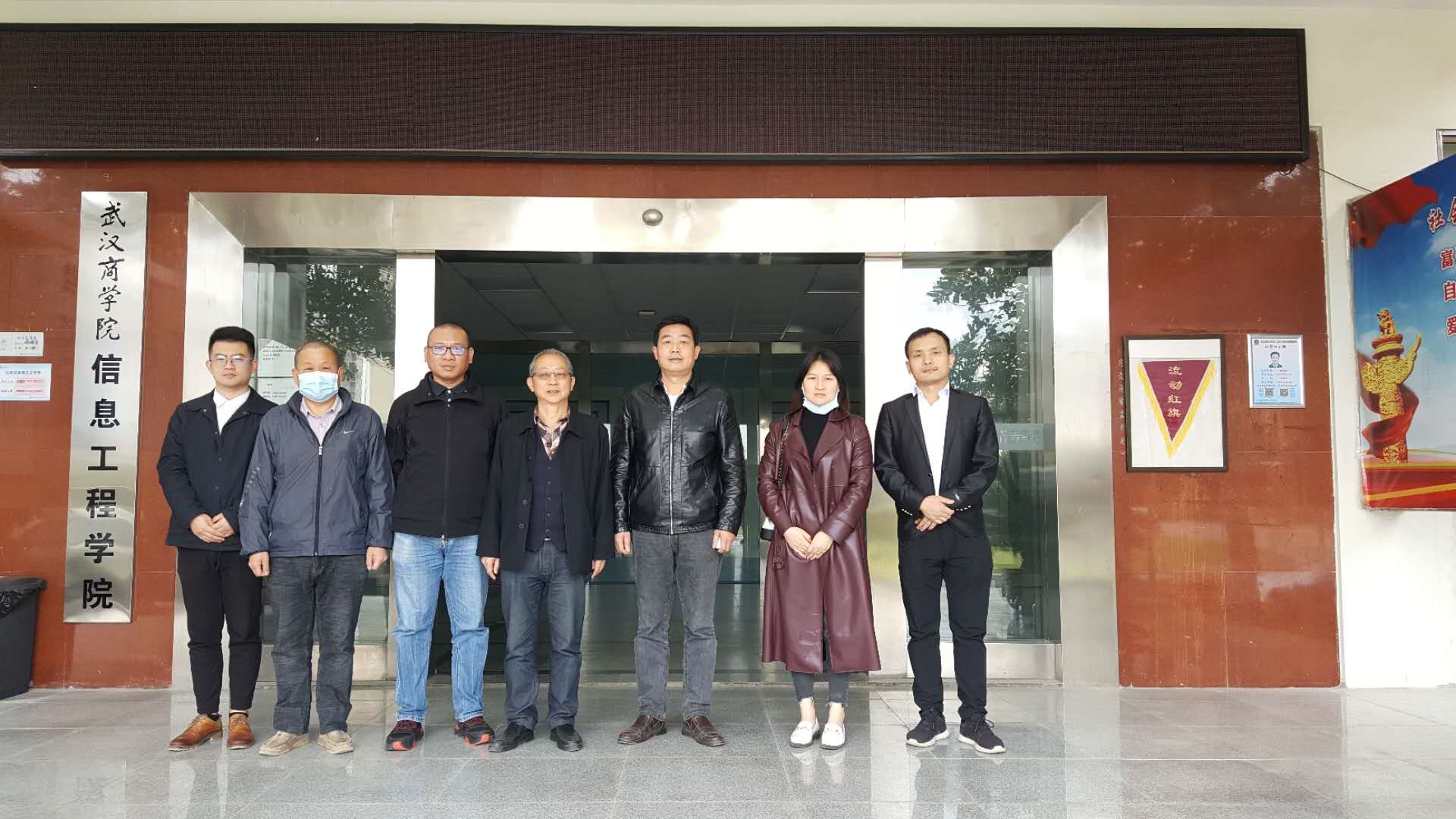 2020年11月5日上午,软通大学华中分院华中大区总经理张晓婕、高级项目经理沈俊、解决方案架构师夏德旺等一行三人到威廉希尔williamhill官网与周天宏院长、软件工程教研室孔华峰教授,社会服务与实验实训办公室李志等三位老师洽谈了鲲鹏产业学院建设方案,会后与威廉希尔williamhill官网学总支书记高福海同志一起合影。