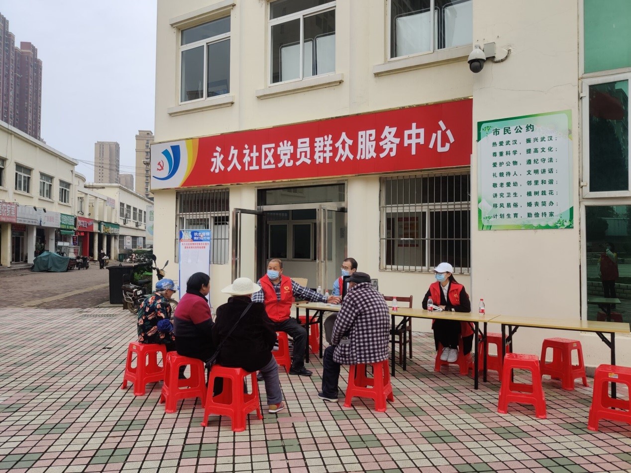 李志老师带领2名学生在永久社区党员群众服务中心大门口摆摊开展电脑选购与维护咨询服务活动。