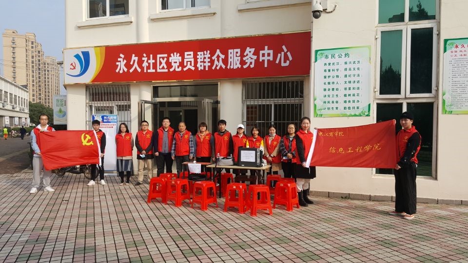 刘佳、李川老师带领4名学生进永久社区开展电脑义务维修活动,询问电脑出现的问题,帮助社区办公室及居民维护安装计算机系统。