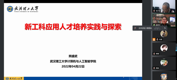 2022年4月22日晚,威廉希尔williamhill官网邀请了武汉理工大学计算机与人工智能学院院长熊盛武教授开展了“新工科应用人才培养实践与探索”学术讲座,信息工程学院全体教师和校内相关教师在线参与了活动。