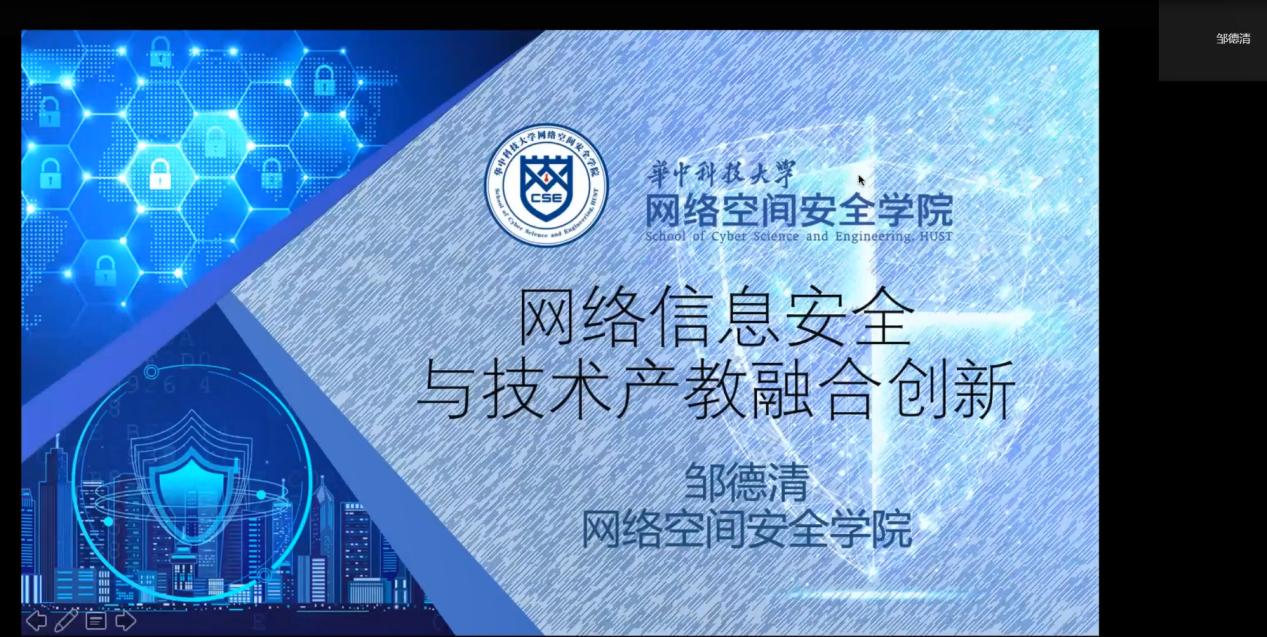 2022年4月28日晚,威廉希尔williamhill官网邀请了华中科技大学网络空间安全学院常务副院长邹德清教授开展了“网络信息安全与技术产教融合创新”学术讲座,信息工程学院全体教师和校内相关教师在线参与了活动。
