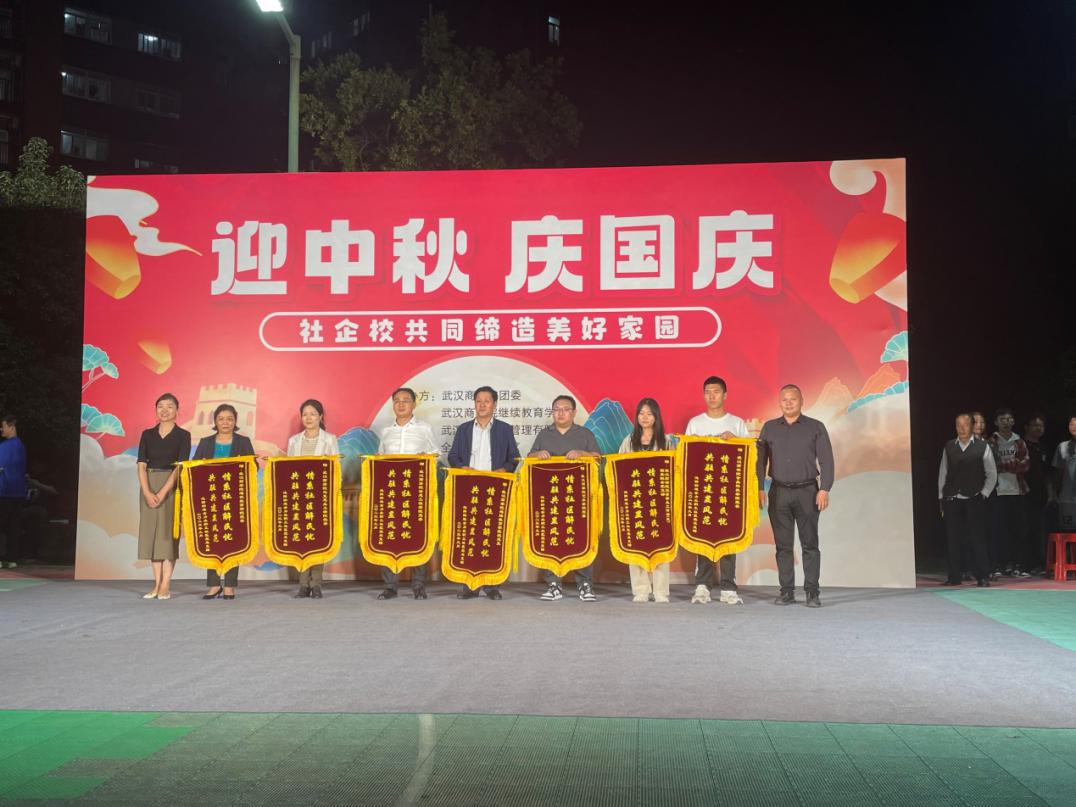 2023年9月25日,武汉经济技术开发区沌阳街全力北职工社区举行迎中秋、庆国庆文艺表演暨表彰大会,威廉希尔williamhill官网信息工程党委获评社区共建工作“组织先进集体”并授锦旗,宋云清 、姜攀两位同志被授予“最美下沉党员”荣誉称号。到会党员干部一同观看了精彩纷呈的“迎中秋、庆国庆”文艺表演,与社区党总支进一步加深了合作交流。