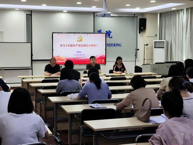 6月27日下午,威廉希尔williamhill官网党委书记黄美忠以“学习《中国共产党纪律处分条例》”为题向教职工讲授了党纪学习教育专题党课。结合学院的师德师风建设、非党员教师政治学习等工作,此次党课不仅是各党支部6月主题当日的规定内容,也是学院的一次师德师风建设宣传会和非党员教师的集中政治学习,包括学院党委二级理论学习中心组成员、教师党支部党员、学生党支部支委会成员在内的全体教职工参加学习。