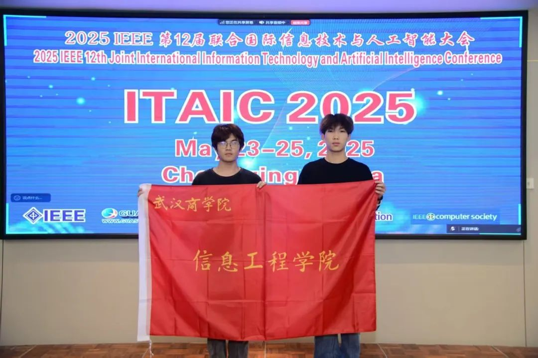 我校威廉希尔williamhill官网数据科学系23级数据科学与大数据技术二班郭衍虹、程逸飞同学在2025年5月23日至25日,于中国重庆参加了2025 IEEE 第12届联合国际信息技术与人工智能大会 (ITAIC 2025)。此次会议旨在为来自世界各地的研究人员、学者和工业专业人士提供一个平台,以展示他们在信息技术、通信、网络、电子和自动化控制方面的研究成果和开发活动。