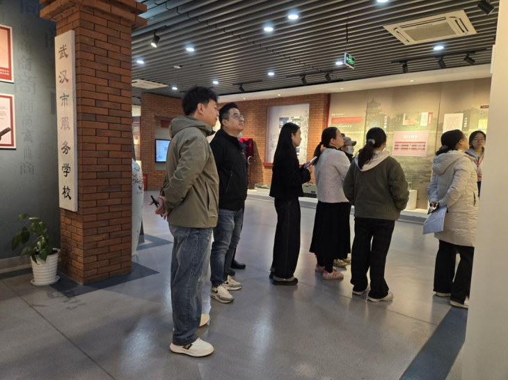 学院教师一行首先一边听取校史馆志愿讲解员的介绍,一边深入参观了校史馆,循着历史脉络重温学校发展历程,感悟办学初心与使命。大多数教师是第一次参观校史馆,在沉浸式的参观体验中,大家不仅对校史馆的展出内容、布局呈现等予以肯定,时而表达惊讶、纷纷点赞,更了解到学校源起东西湖区酱品厂到武汉市饮食服务学校、武汉市第二商业学校、武汉商业服务学院等一步一步到如今,深刻领悟了学校开创之艰辛、深厚的底蕴积淀与沿袭传承的精神内核。