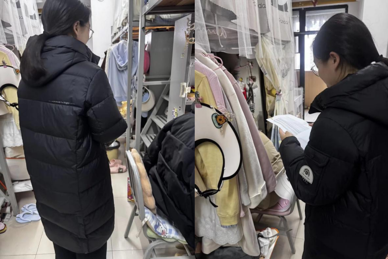 晚8时许,查寝人员分组深入各楼层宿舍。在检查过程中,工作人员秉持“公正严谨、礼貌沟通”的原则,对每间宿舍的用电安全、卫生状况及设施完好情况逐一排查。针对部分宿舍存在的插线板摆放不规范、杂物堆积等问题,检查人员现场督促同学们整改,并就行了拍照登记,有效排查了潜在的安全风险,为后续宿舍管理工作开展奠定了坚实基础。